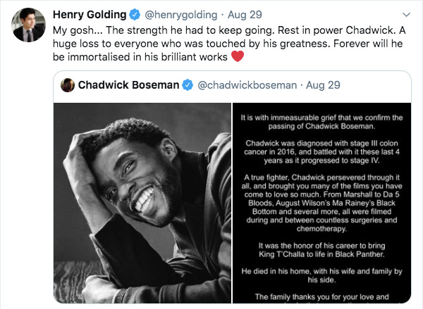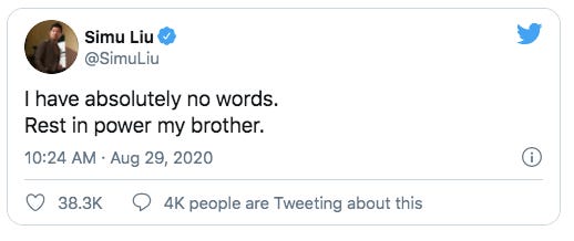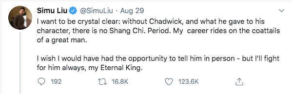 The big news of last week was the passing of Chadwick Boseman. While lots have been written about what an incredible person he was (and he absolutely was), it's appropriate to highlight some of the responses from Asian American voices to his passing. After all, Black Panther led the way and Crazy Rich Asians came next and now Shang-Chi is on the horizon.