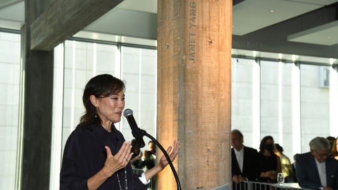 Janet Yang, the veteran Hollywood producer who has been described as “the godmother of Asian-Americans in the industry” — and who is rumored to be a candidate to succeed David Rubin as the president of the Academy of Motion Picture Arts and Sciences’ board of governors, on which she has served as a governor-at-large for the last three years and a vice president for the past year, in August — was feted on Tuesday evening at the Academy Museum of Motion Pictures, where a pillar was dedicated and a dinner was held in her honor.